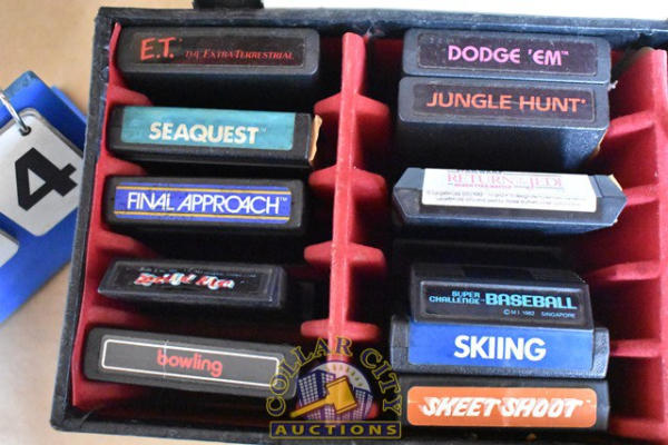 #224 – Lot of various, mostly Atari Video Computer System Games including Asteroids, Skeet Shoot, Sea Quest, Bowling, Etc. Also includes Parker Brothers Games including Star Wars Return of the Jedi, Death Star Battle. All games are in a case. (We do not guarantee the working condition or completeness of any of these items.)