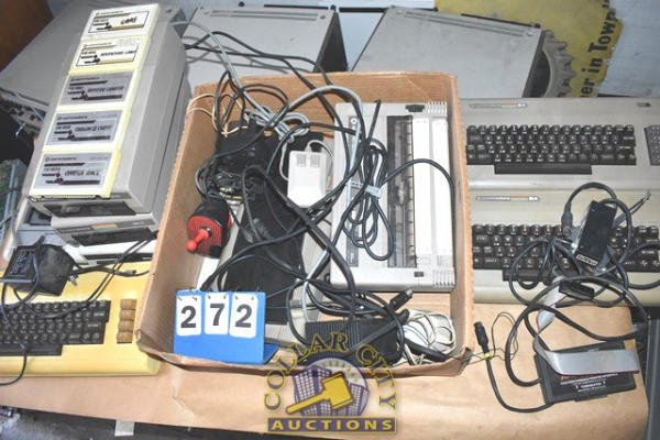 Large lot of Commodore Hardware including a VIC20 Computer, 2 Commodore 64s, a Commodore Single Drive Floppy Disc VIC1541, a Commodore 1541, etc. (We do not guarantee the working condition or completeness of any of these items.)