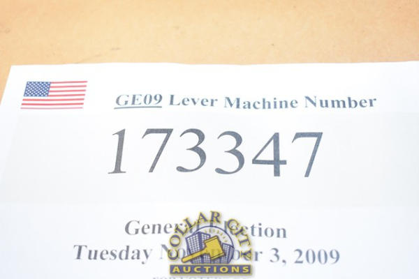 #517 – Automatic Voting Machine Print-o-matic, Made by A.V.M Corp. Believed to have last been used in a General Election in November 2009. Machine number is 173347. Lever Machine, No keys present (CUSTOMER IS RESPONSIBLE FOR REMOVAL. NO HELP WILL BE AVAILABLE.) (We do not guarantee the working condition or completeness of any of these items.)