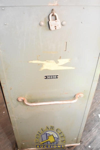 #518 – Automatic Voting Machine Lever Operated Voting Machine. Still has tags in it from the last election. It was used last in the 1988 Presidential Election. No keys present. 1 door is open. (CUSTOMER IS RESPONSIBLE FOR REMOVAL. NO HELP WILL BE AVAILABLE.) (We do not guarantee the working condition or completeness of any of these items.)
