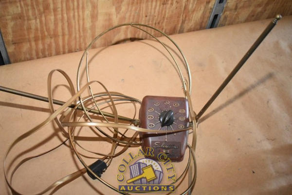 Vintage Air Line TV, approx. 26" with Realistic TV-100 Stereo TV Receiver and Silvertone Color Control Rabbit Ears (We do not guarantee the working condition or completeness of any of these items.)