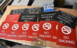 Lot of Restricted Access, Authorized Personnel, Emergency Exit Only, Photo ID Present, and No Smoking Signs