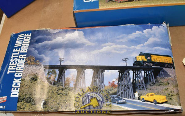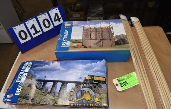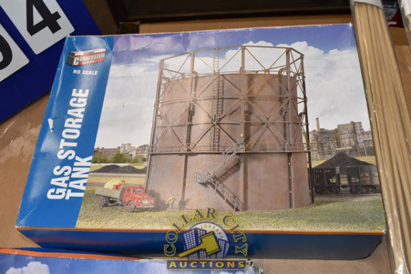 Lot of 2 assembly kits by Cornerstone Series, 1 is a Gas Storage Tank, 1 is a Trestle with Deck Girder Bridge