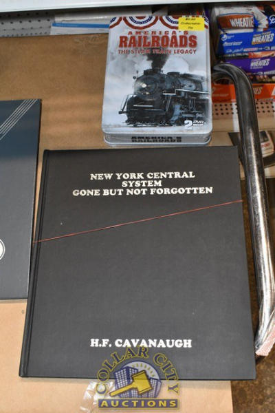 Lot of America's Railroads, The Steam Train Legacy, collectible tin with 2 DVDs and New York Central System books.