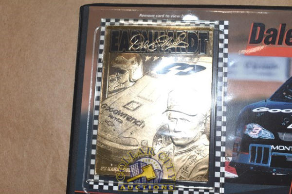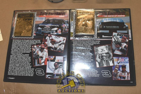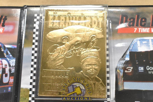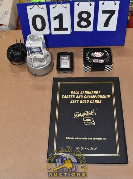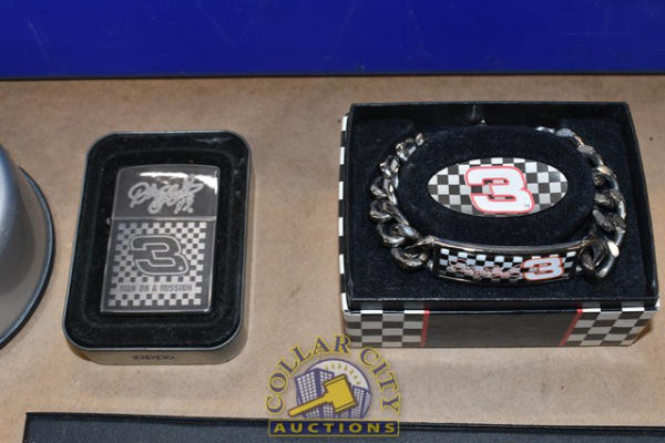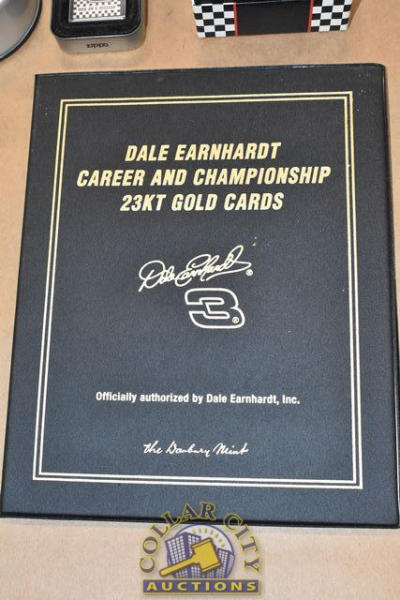 Lot of Dale Earnhardt Memorabilia including Zippo Bracelet and a Dale Earnhardt Career and Championship 23 carat Gold Card by the Danbury Mint