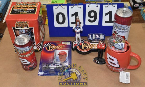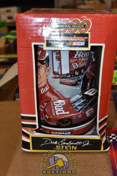 Lot of Dale Earnhardt Jr. Memorabilia including Stein, Coffee Mug and Budweiser Cans