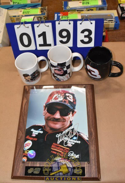 Autographed Dale Earnhardt Sr. Picture and 3 Coffee Mugs