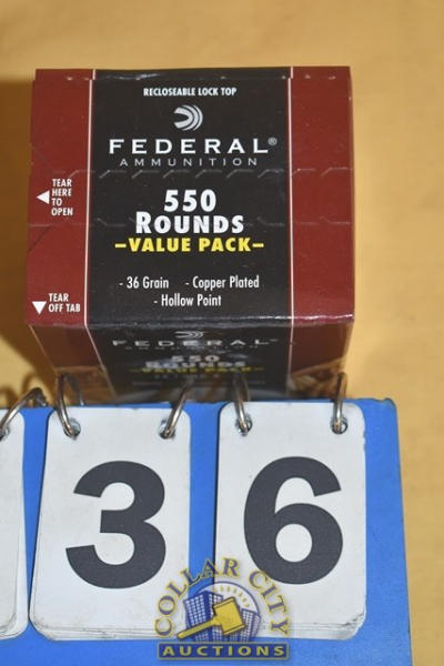 Box of Federal Ammunition, 550 rounds .22 Long Rifle, 36 grain, copper plated, hollow point
