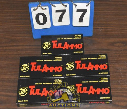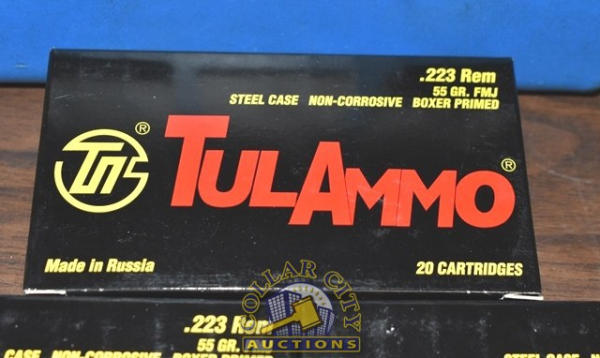 Lot of 5 boxes of Tulammo .223 Rem, 55 grain, FMJ (100 rounds total)