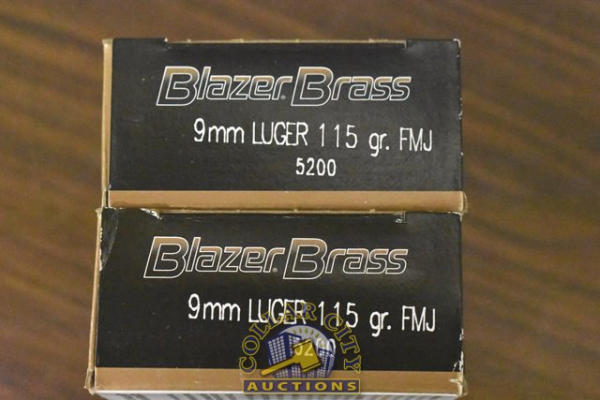 Lot of 2 boxes of Blazer Brass 9mm Luger, 115 grain, FMJ ammunition (100 rounds total)