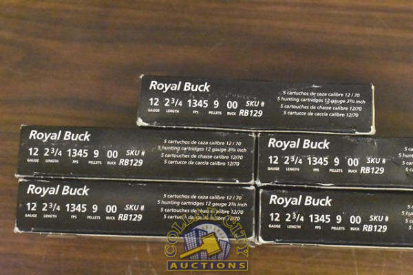 Lot of 5 boxes of Royal Buck 12 gauge, 2 3/4" 00 Buck Shot Shells (25 rounds total)