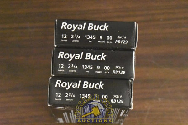 Lot of 3 boxes of Royal Buck 12 gauge, 2 3/4" 00 Buck Shot Shells (Total of 15 rounds)