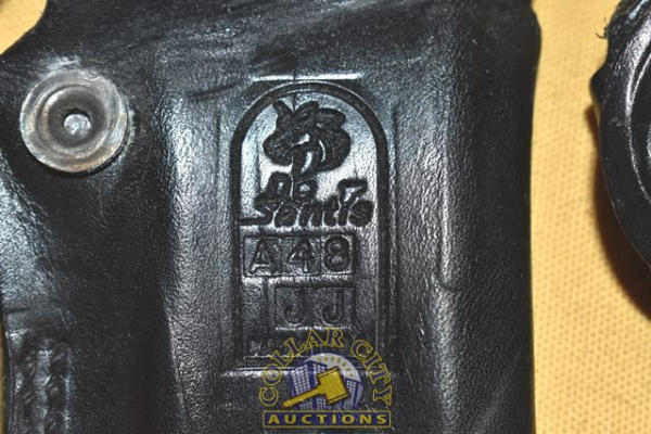 Lot includes a De Santis AO1LL magazine holster, Dillen Leather believed to be magazine holster, and a De Santis A48JJ holster
