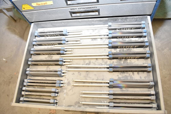Chief Automotive Systems Velocity Cabinet with computer, hole attachments, bolt attachments, targets, etc.