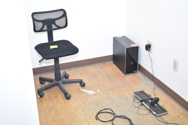 Office contents consisting of desk (approx. 59" x 29"), chairs, 2-door cabinet, Dell Computer tower