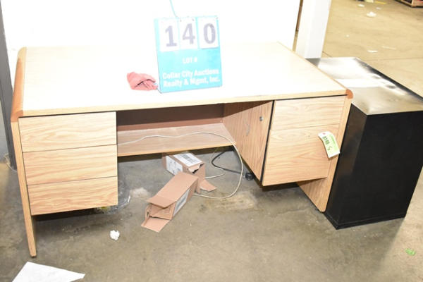 Wooden approx. 6' desk with 2 drawer lateral filing cabinet