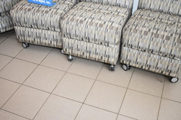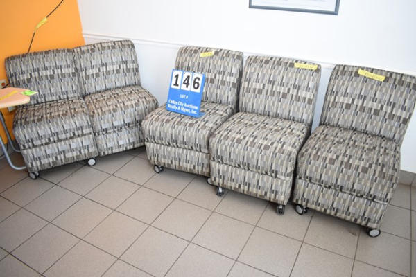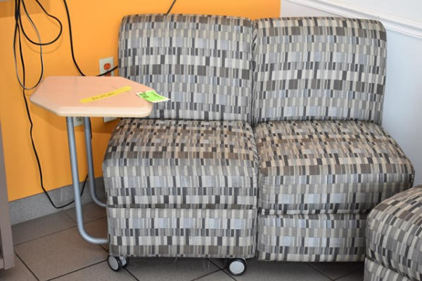 Office waiting room furniture consisting of 3 chairs and a loveseat with built-in stand