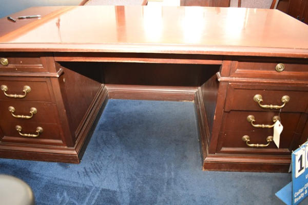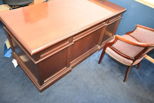 Executive wooden desk, approx. 6' long, with 2 chairs