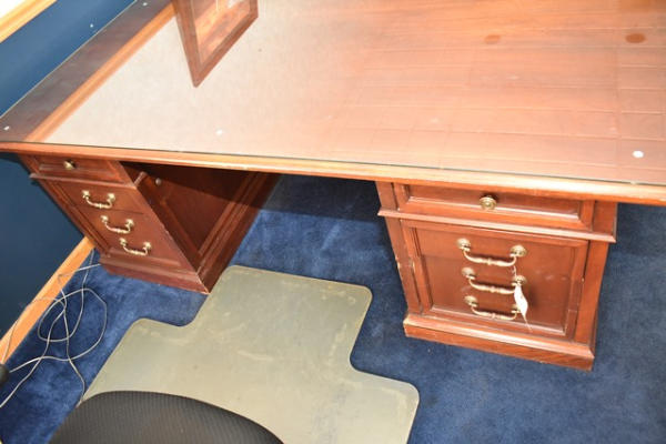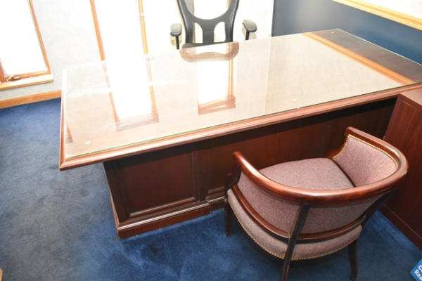 Executive wooden desk, approx. 7' long, with 2 chairs
