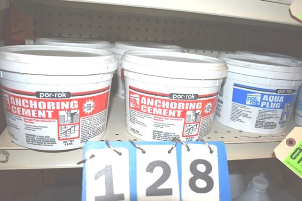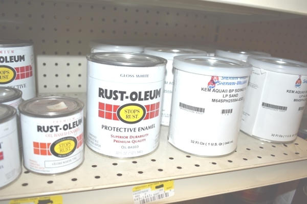 Shelf lot consisting of Rustoleum paint, Fast Plug Hydraulic Cement, etc.