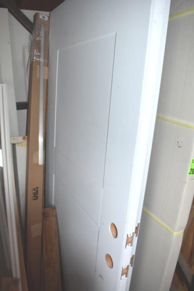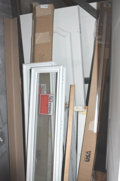 Lot of assorted door slabs, door windows, etc.
