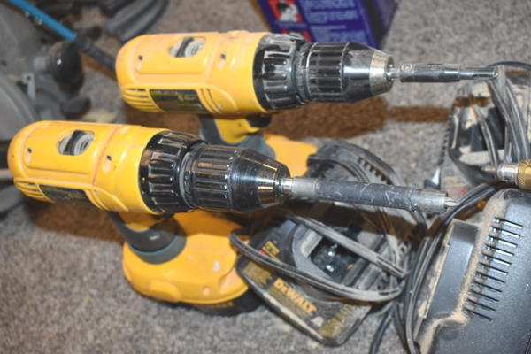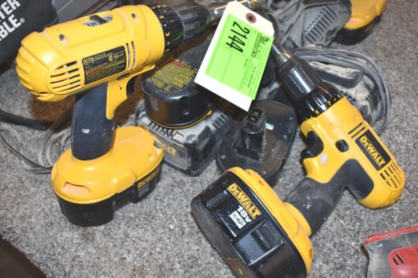 Lot consisting of 4 18 volt Dewalt screw guns with a total of 6 batteries and 4 chargers