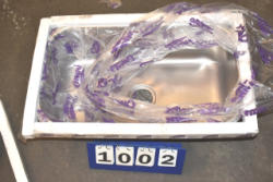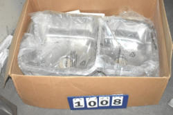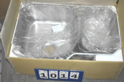 Lot of 2 Omni single bowl stainless steel sinks, overall outer dimension is 30"