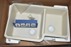 Double bay 1 and a 3/4 bowl under mount biscuit sink, approx. 33" overall