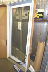 Large lot of door slabs, storm door parts, storm door displays, etc.