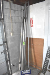 Cabinet and corner contents consisting of straps, caution tape, fire extinguisher
