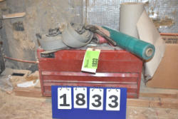 Rest of bench contents consisting of gas cans, toolbox, mop pail