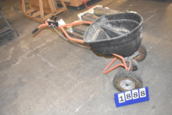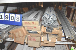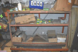 Cart with contents consisting of screws, snow rake heads, brad nails, etc.