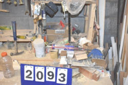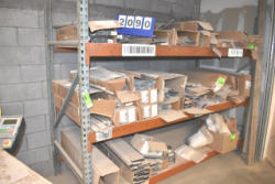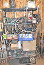 Shelving unit with contents consisting of wire, c-clamps, etc.