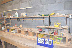 Contents of bench including door holding hardware, Bondo, caulk, nail screws