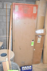 Approx. 6' tall single door cabinet with contents consisting of glue, roof cement, paint