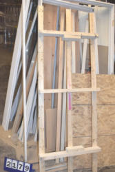 Material cart with assorted door, door jamb wood, door frame wood, etc.