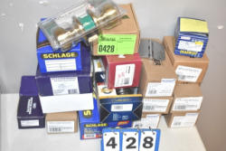Assorted locks and doorknobs and hinges