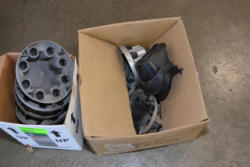 Box lot of assorted Chevy hubcaps
