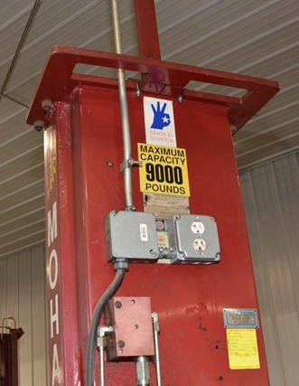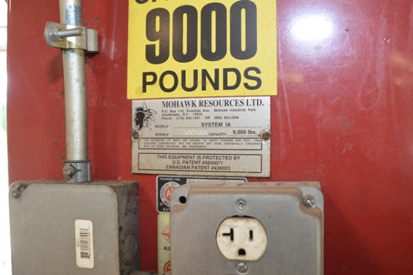 Mohawk 9000 lb. capacity vehicle lift. CUSTOMER IS RESPONSIBLE FOR REMOVAL AND MUST PROVIDE CERTIFICATE OF INSURANCE