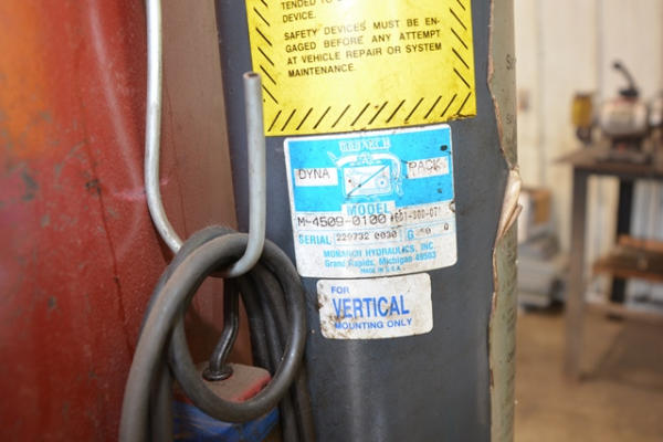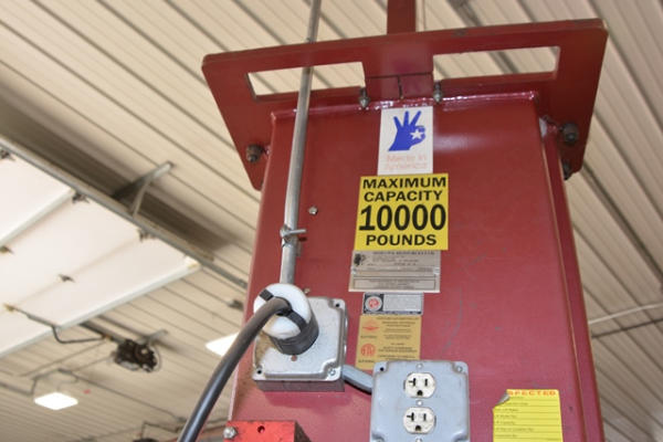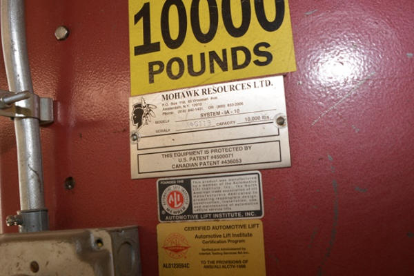 Mohawk 10,000 lb. capacity vehicle lift. CUSTOMER IS RESPONSIBLE FOR REMOVAL AND MUST PROVIDE CERTIFICATE OF INSURANCE.