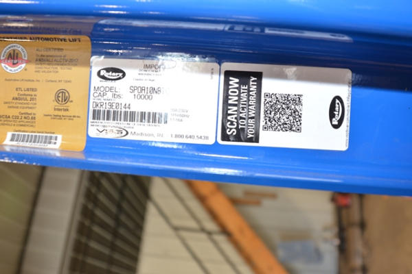 Rotary lift, 2 years old, 10,000 lb. capacity. CUSTOMER IS RESPONSIBLE FOR REMOVAL AND MUST PROVIDE CERTIFICATE OF INSURANCE.