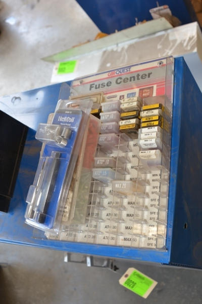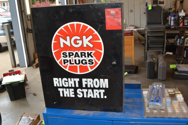 Lot of spark plug cabinets with contents