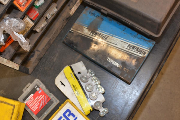 Lot of assorted cotter pins, coil adapter kit, battery terminals