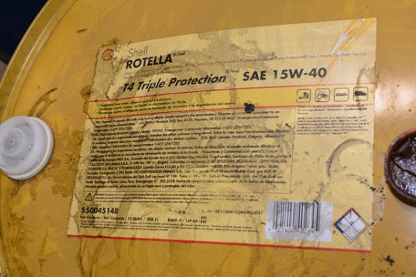 Shell Rotella P4 triple protection, SAE 15W-40, appears to be full with pump