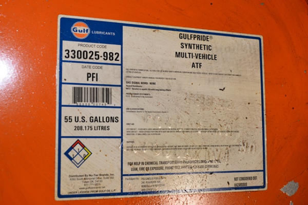 Gulf Pride synthetic, multi vehicle ATF, 55 gallon drum with pump - not full