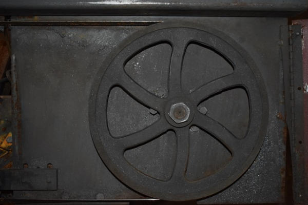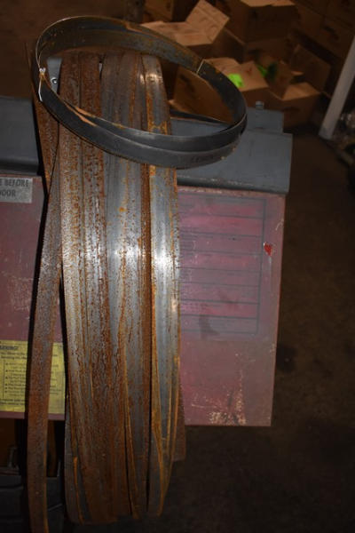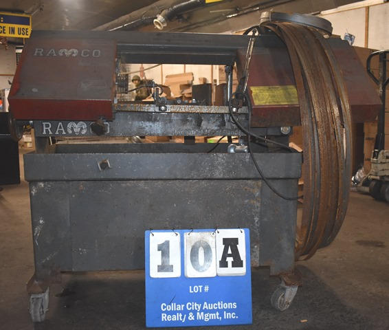 RAMCO metal cutting band saw with blades on wheels