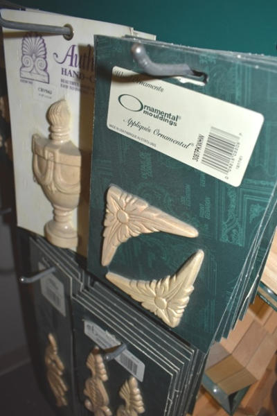 Easitrim corner blocks, ornaments, miterless corners display with contents