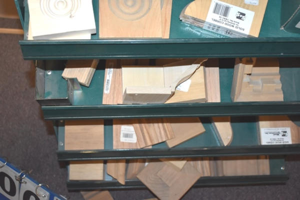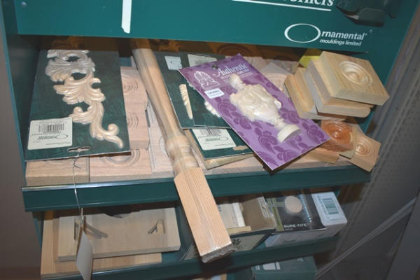 Easitrim corner blocks, ornaments, miterless corners display with contents