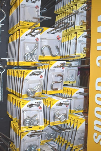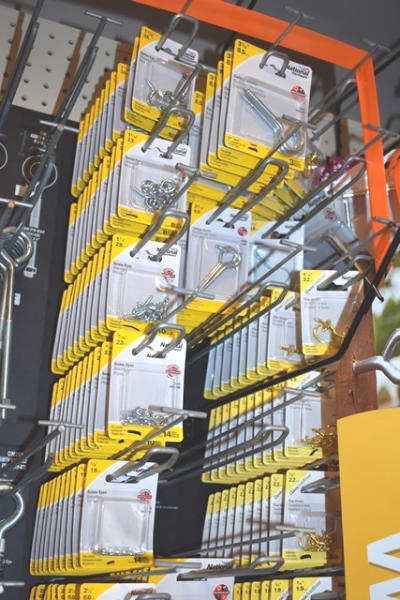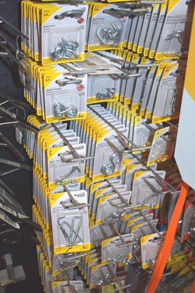 Large hardware lot consisting of turnbuckles, eye bolts, shelving brackets, hook latches