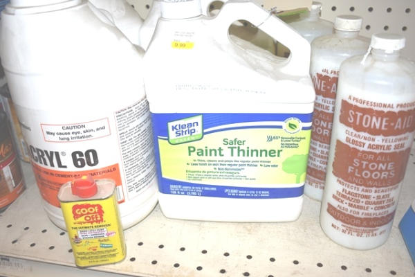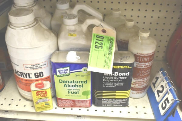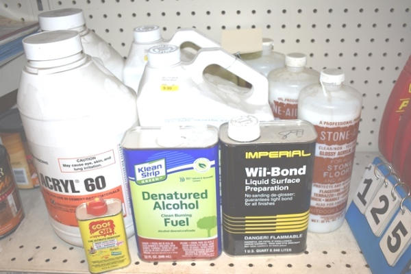 Lot consisting of Denatured Alcohol, Stone Aid Clear Acrylic Seal, etc.